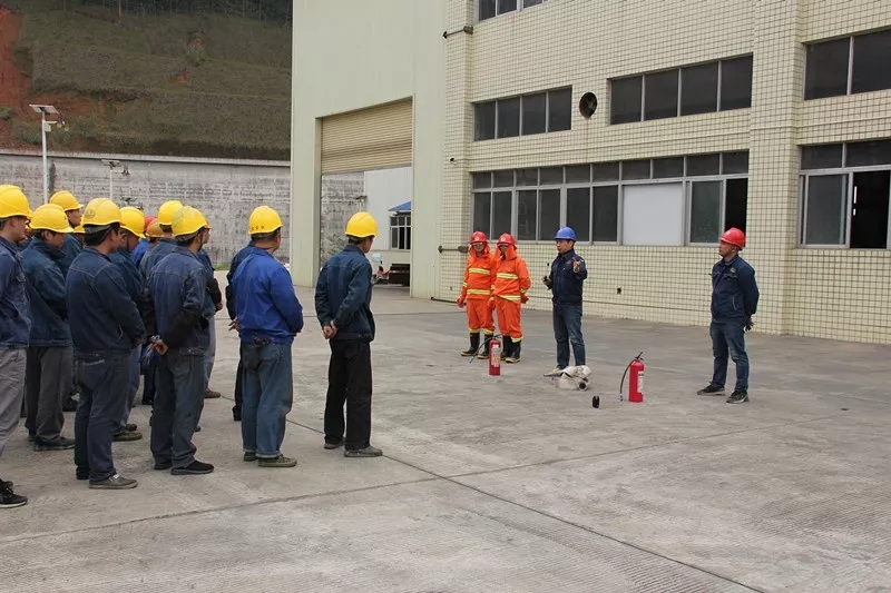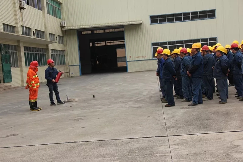 昨天下午4點鐘,廠長謝思宜在車間東門廣場組織大家集合,車間安全監督員張才雄跟大家講解各種滅火器及消防水帶連接的使用方法。
