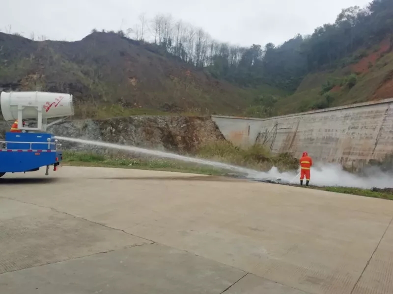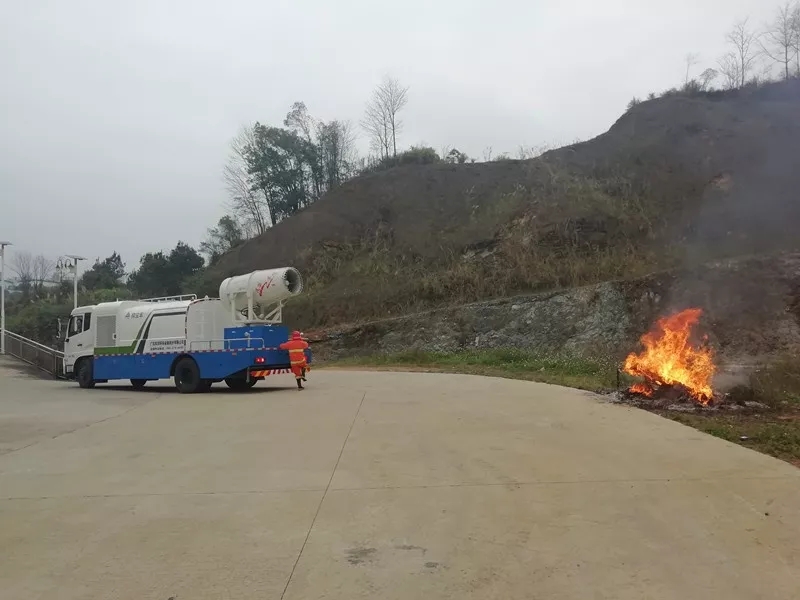 然后進行霧炮灑水車及消防滅火器的機械結合人工的滅火演習。