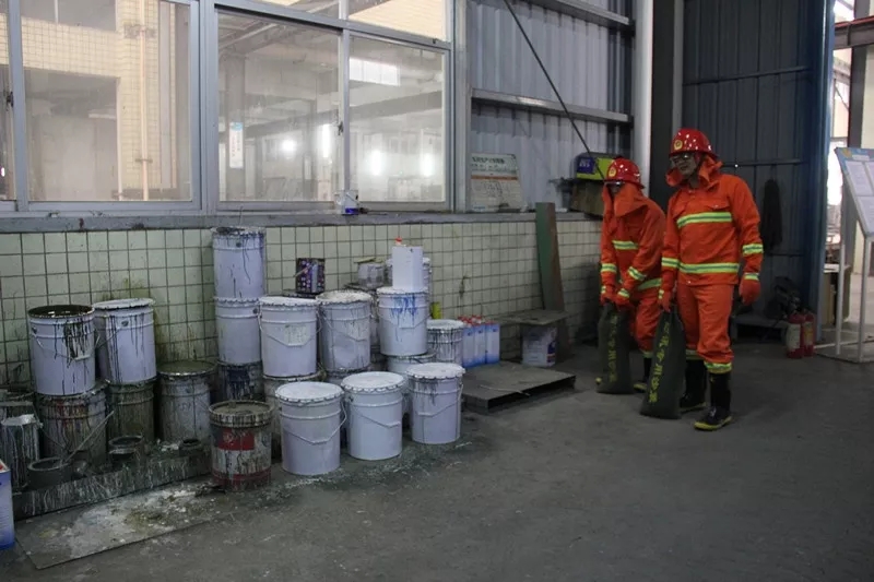 在車間安全監督員的要求下,車間進行了油漆桶漏油用沙掩蓋、叉車漏油著火后如何用沙掩蓋及用滅火器滅火的動作示范。