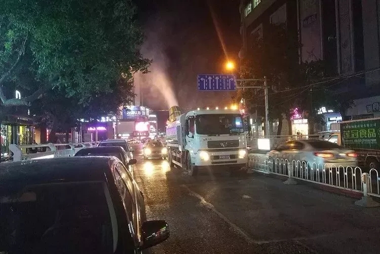 進入暑期以來,霧炮車的作業時間從以前的晚上19:30延長到23:00結束,遇到大風等特殊天氣,作業時間更是延長到晚上零點以后。目前,每輛霧炮車圍繞重點區域巡回霧化24次,每天霧化50多車次,累計用水600余方。