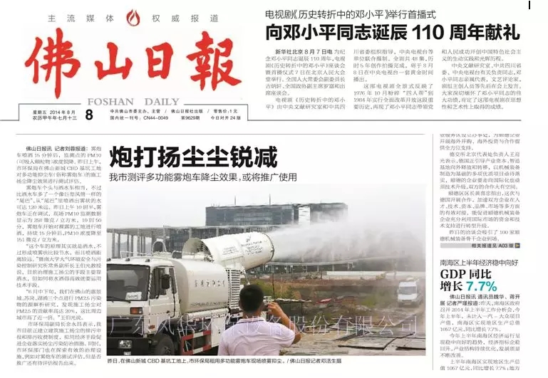 座談會上公司總經理梁良介紹了公司產品在高效降塵減霾、降溫方面的環保治理應用。特別介紹了風華霧炮在佛山環保治理——炮打揚塵塵銳減,抑塵神器顯神威佛山日報的報道。