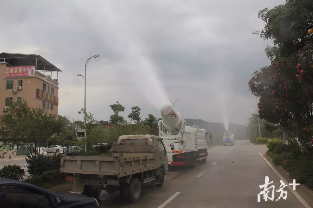 4月20日上午10時許,在長安鎮(zhèn)中心路段看到兩輛后架“大炮”一樣的類似灑水車的“多功能抑塵車”緩緩行駛在道路上,大量水霧從“炮口”噴出,不僅帶來涼爽,也改善了空氣質量。隨后記者從長安環(huán)保分局了解到,這是環(huán)保分局近期購買的風華環(huán)保降塵減霾風送式噴霧機設備,在鎮(zhèn)中心區(qū)進行噴霧作業(yè),達到道路抑塵降塵的目的,從而提升空氣質量