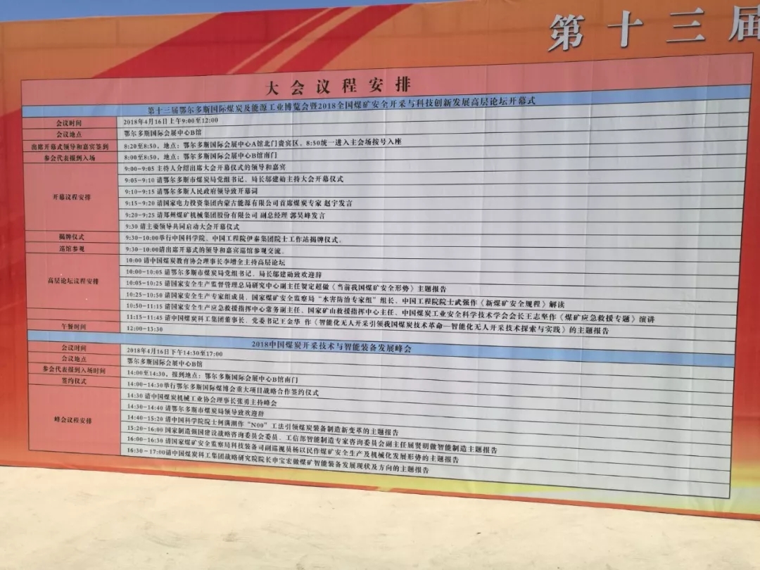 第十三屆鄂爾多斯國際煤炭及能源工業(yè)博覽于2018年4月16日至18日在鄂爾多斯國際會展中心隆重舉行。大會將以“安全生產、高產高效、清潔利用、綠色發(fā)展”為主題,集中展示國內外最先進的煤礦采掘、煤礦安全生產、煤炭安全生產信息化、煤炭互聯(lián)網+、煤炭物流信息化等。