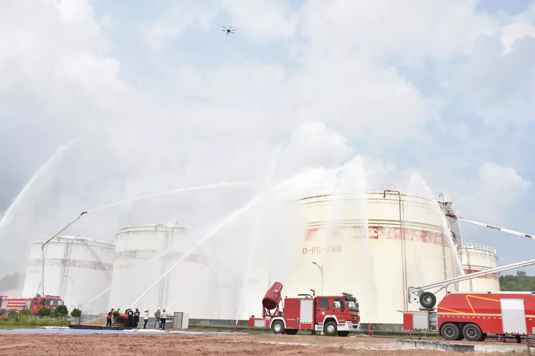 市消防支隊指揮中心接警后,邱訓正政委率全勤指揮部遂行出動,同時調集8個大隊、10個中隊,共26輛消防車、168名消防指戰員和1個企業專職消防隊前往現場處置,調集泡沫液20余噸、高噴車5輛、移動炮7門、消防機器人3臺、遠程供水系統1套參戰。