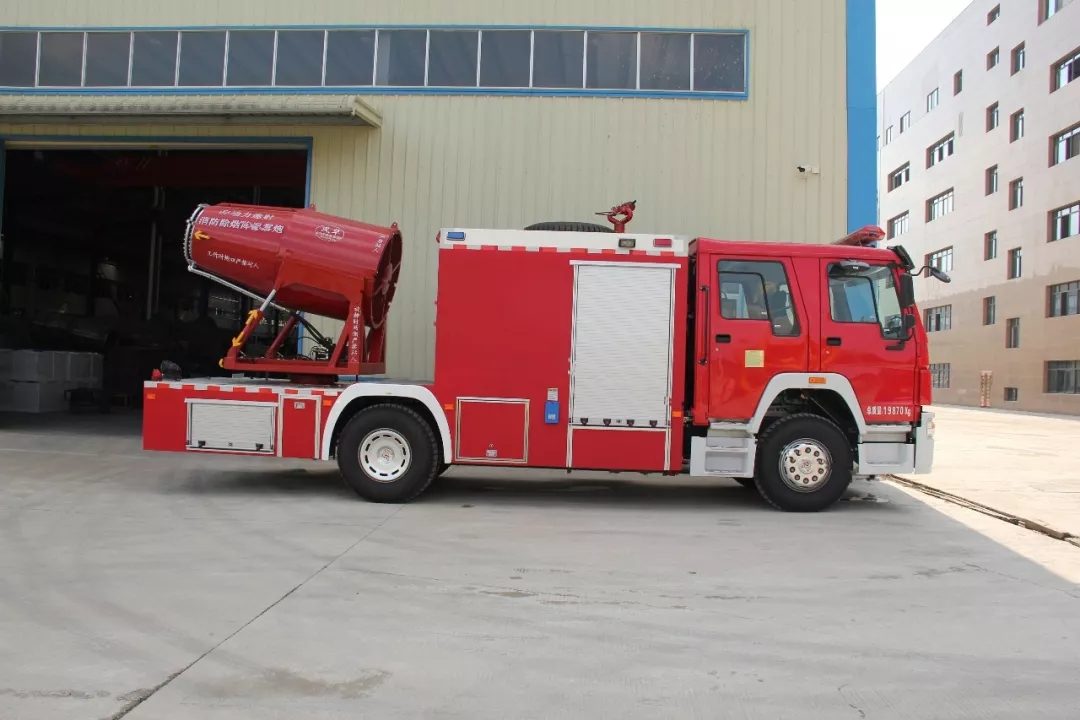 排煙消防車包含自動速射消防除煙設備與水罐式消防車。可以直接配接,改裝、安裝、使用十分方便。它的原理是利用軸流風機的正壓巨大風力將火災產生的“濃烈煙霧”定向吹向火場之外,風中可夾雜大量水霧使火場迅速降溫。