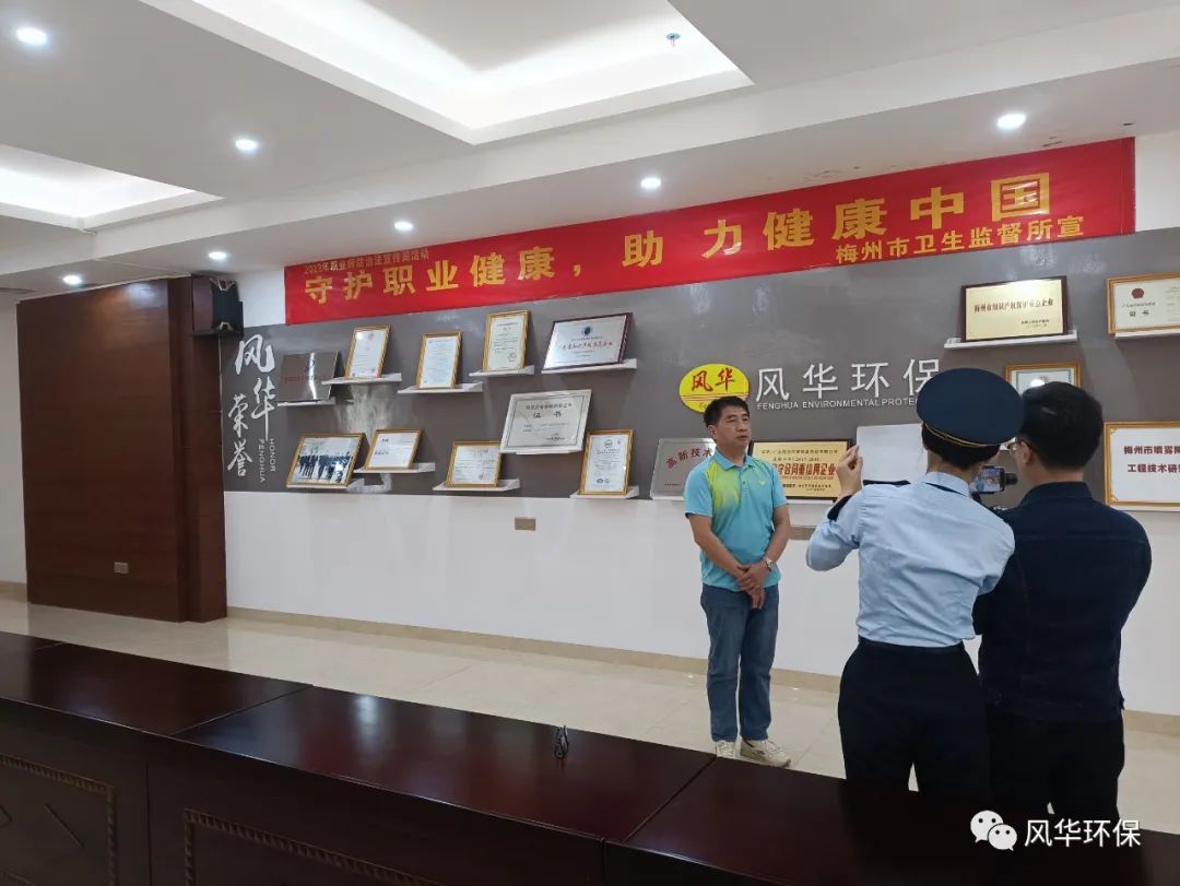 4月27日早上,我公司謝思宜廠長在風華環保大會議室協助梅州市衛生監督所拍攝職業衛生健康宣傳片,拍攝結束后由梅州市衛生監督所為我公司授牌“職業健康企業”。